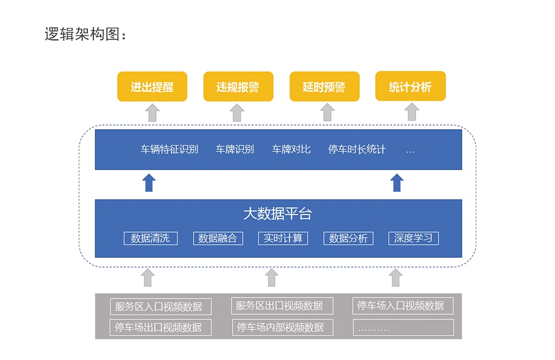 通過大數據平臺,將服務區 卡口監控系統、停車場監控系統等 進行智能對接和數據融合,以大屏 信息發布為載體,以廣場廣播系統 為管理支撐,實現對危化品車輛的 智能引導,報警預警和停車管理。