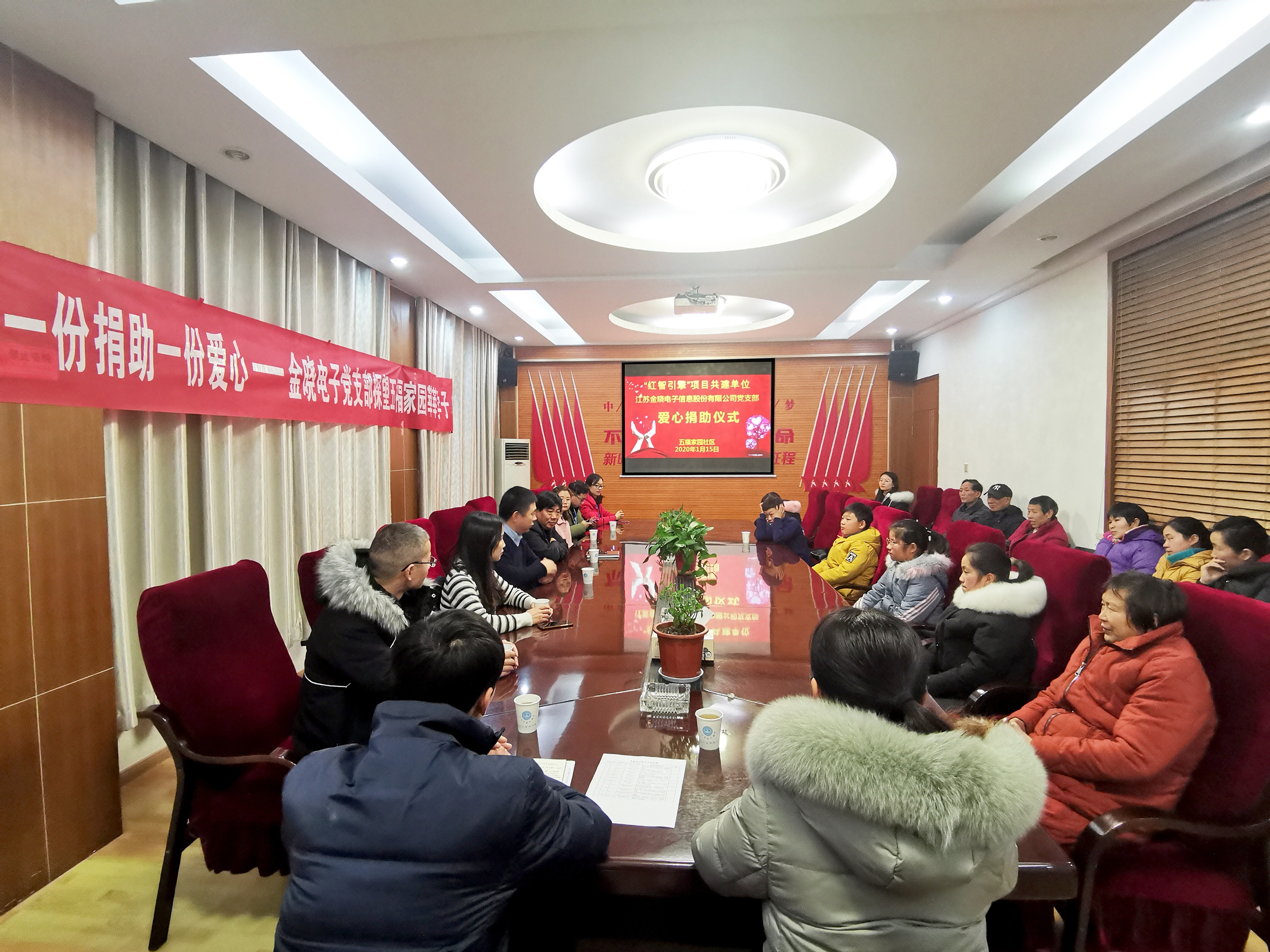 2020年1月15日上午,為響應“紅智引擎”項目愛心捐助活動的號召,踐行企業文化,弘揚公益精神,全面加強服務工作,金曉電子黨支部成員來到五福家園社區,舉行捐助儀式并探望五福家園莘莘學子。