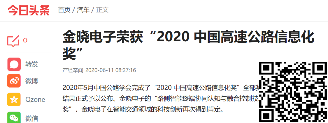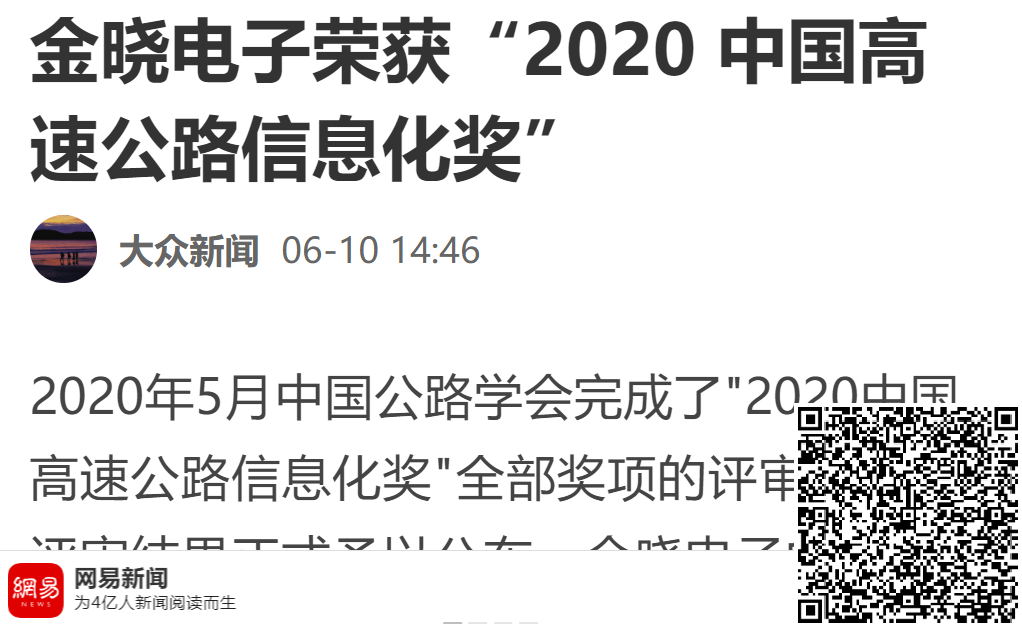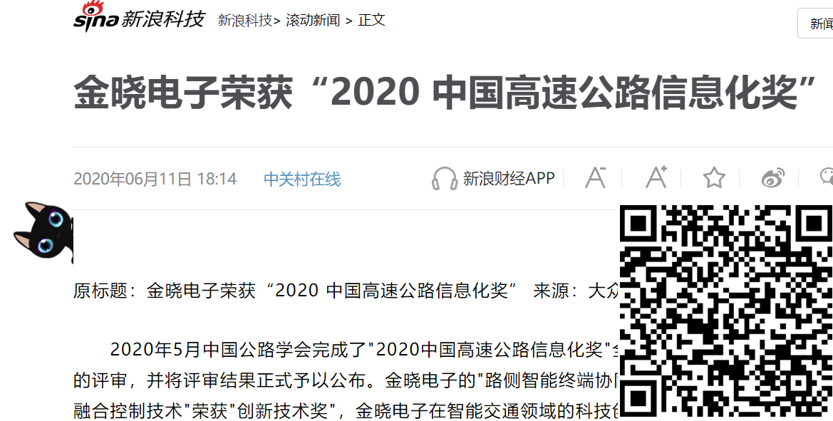 主流媒體關注 | 金曉電子榮獲“2020 中國高速公路信息化獎”