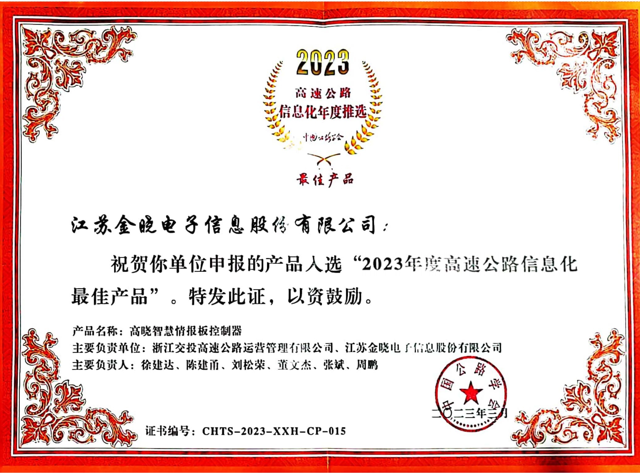 本次會(huì)議企業(yè)緊密圍繞交通部智慧高速公路建設(shè)意見,同時(shí)結(jié)合互聯(lián)網(wǎng)交通大數(shù)據(jù)平臺(tái)、車路協(xié)同、智慧照明,推出了創(chuàng)新CMS智能控制器系統(tǒng)、交通場(chǎng)景綜合應(yīng)用、智慧信息出行發(fā)布等解決方案及產(chǎn)品。此外,在“2023高速公路信息化年度推選”活動(dòng)中,金曉電子聯(lián)合浙江交投高速公路運(yùn)營(yíng)管理有限公司的“高曉智慧情報(bào)板控制器”被推選為“年度最佳產(chǎn)品”,其技術(shù)含量高、性能穩(wěn)定可靠、質(zhì)量經(jīng)久耐用,是被廣泛使用并深受用戶好評(píng)的創(chuàng)新產(chǎn)品。