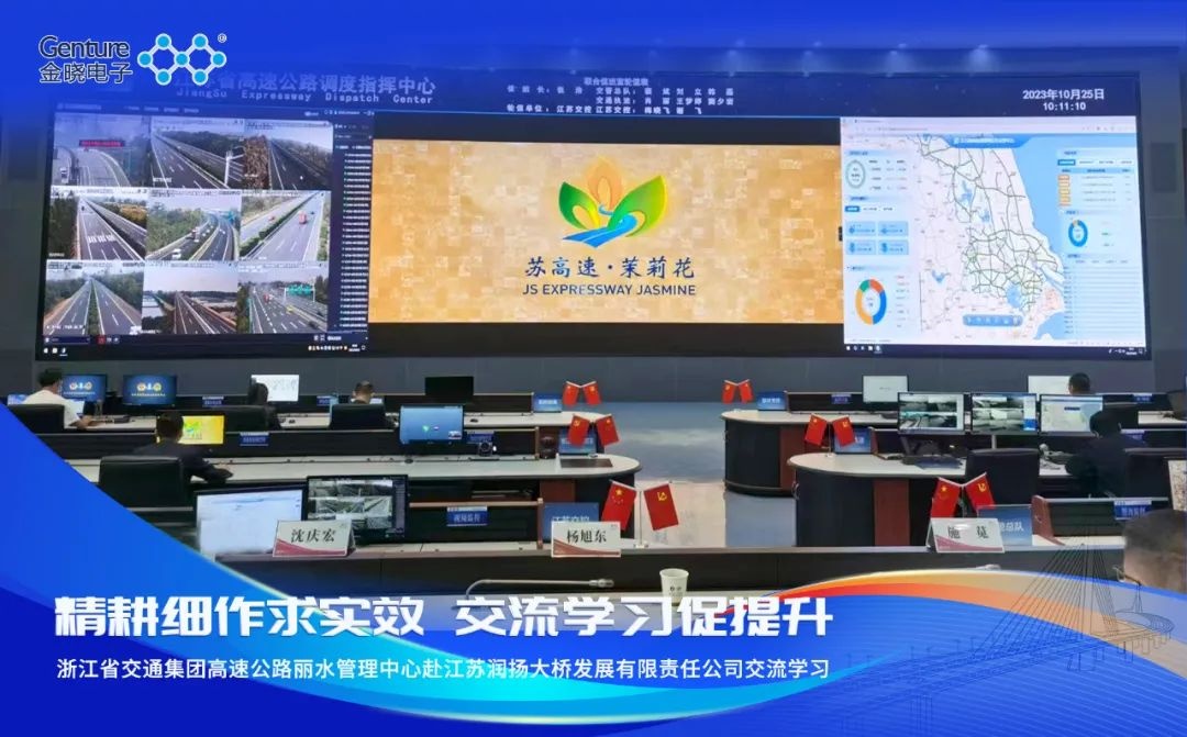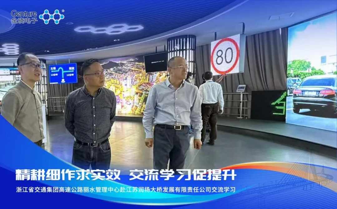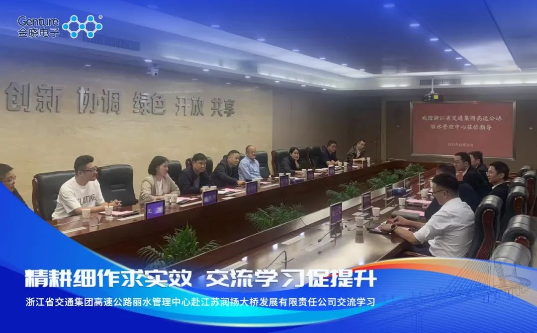 10月25日,浙江省交通集團高速公路麗水管理中心施莧副總經理一行先后赴金曉電子、江蘇高速公路聯網營運管理有限公司、江蘇省高速公路調度指揮中心、江蘇潤揚大橋發展有限責任公司就促進高速公路運營管理提升方面進行學習交流。金曉電子總經理沈慶宏、副總經理戴鐵軍、首席架構師李濤博士等參與交流。