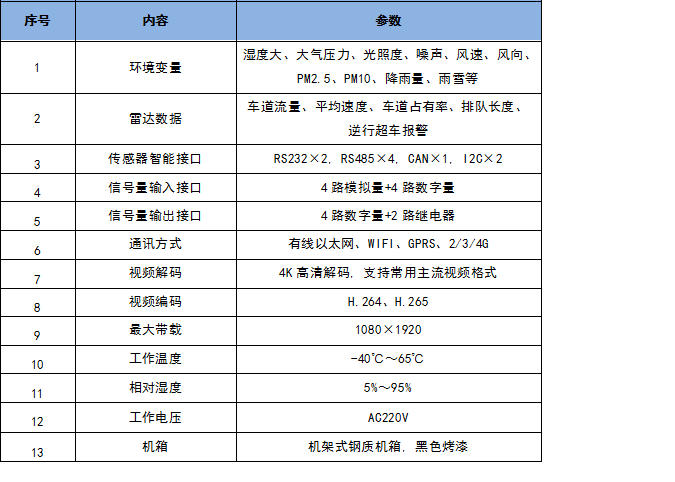 智能路側終端作為高速公路基礎信息節點,不僅可以滿足傳統的可變信息情報板的全部控制功能,同時集成高清視頻監控、多目標雷達測速、周邊氣象環境監測等功能于一體,形成了一個完整的信息顯示、數據采集通道,通過多種聯網方式為控制中心提供實時交互數據。